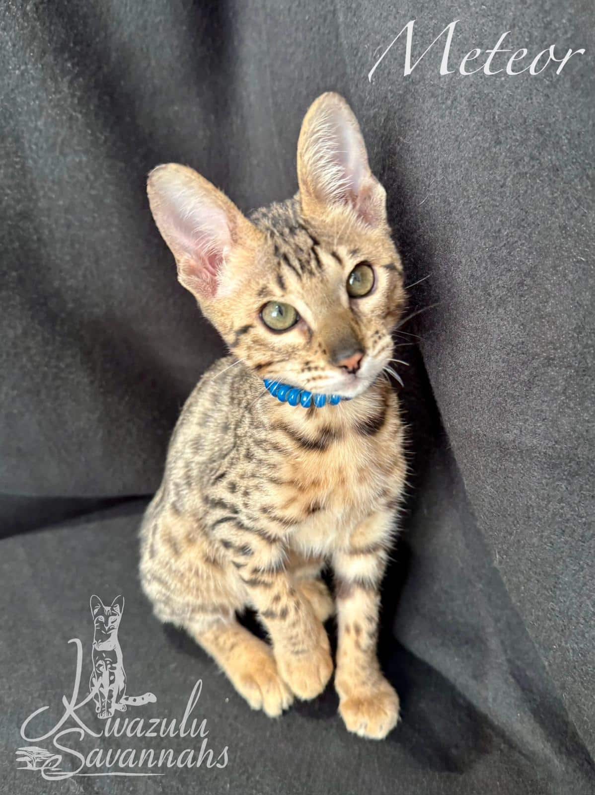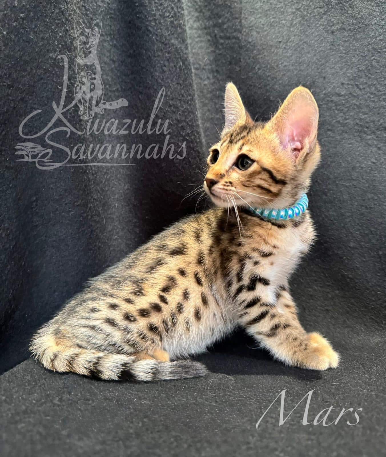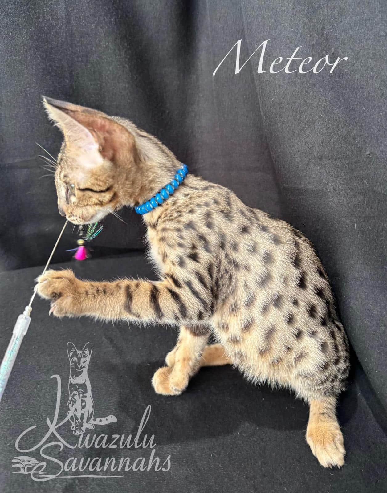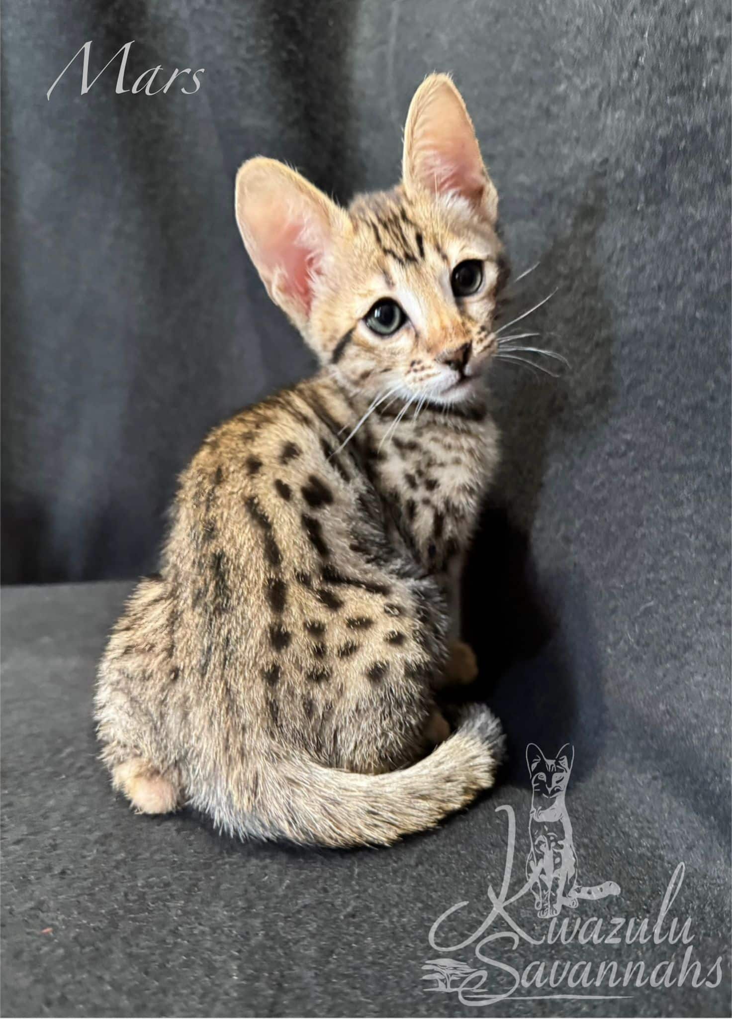 Dear Kwazulu Savannahs! We cannot be grateful enough for our baby Bars! What a sweet, loving, clean, happy and healthy baby! Barsik came to us TICA registered with a full family tree included in his documents, food supplies and toys. Thank you so much for eagerly answering to all our questions and feeding advice! So are so keen to get Bars a little brother or sister in the future!