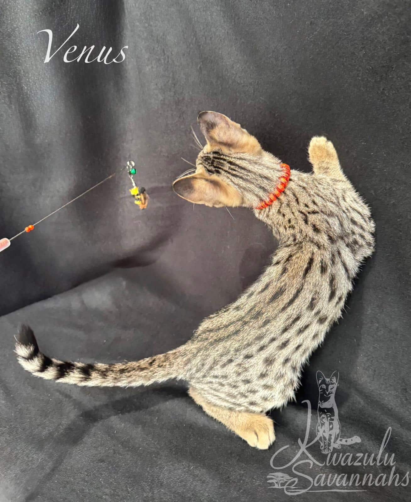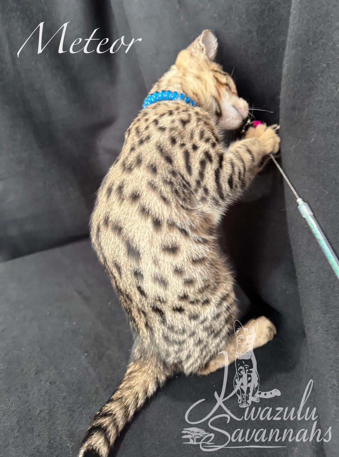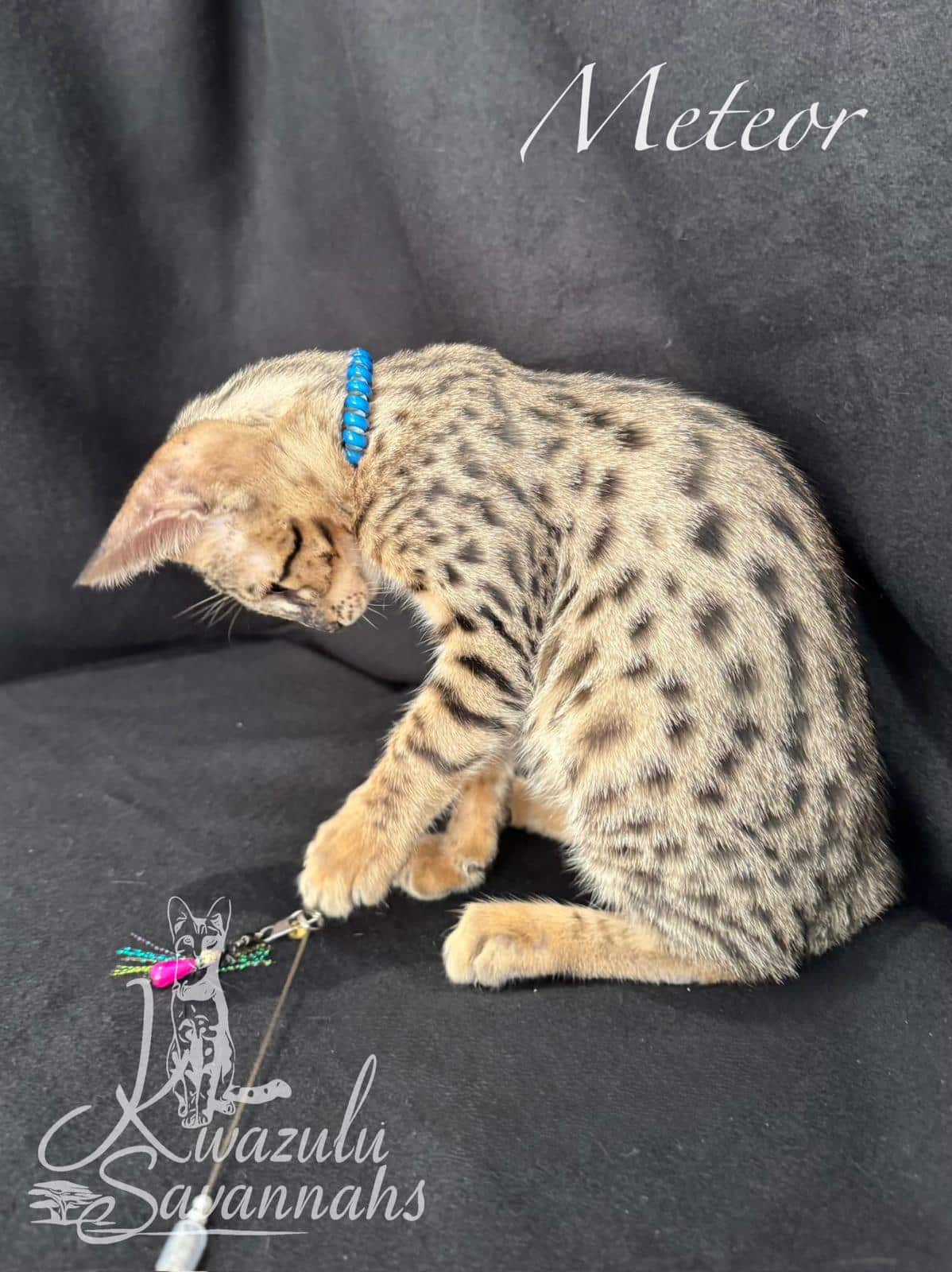 Dear Kwazulu Savannahs! We cannot be grateful enough for our baby Bars! What a sweet, loving, clean, happy and healthy baby! Barsik came to us TICA registered with a full family tree included in his documents, food supplies and toys. Thank you so much for eagerly answering to all our questions and feeding advice! So are so keen to get Bars a little brother or sister in the future!