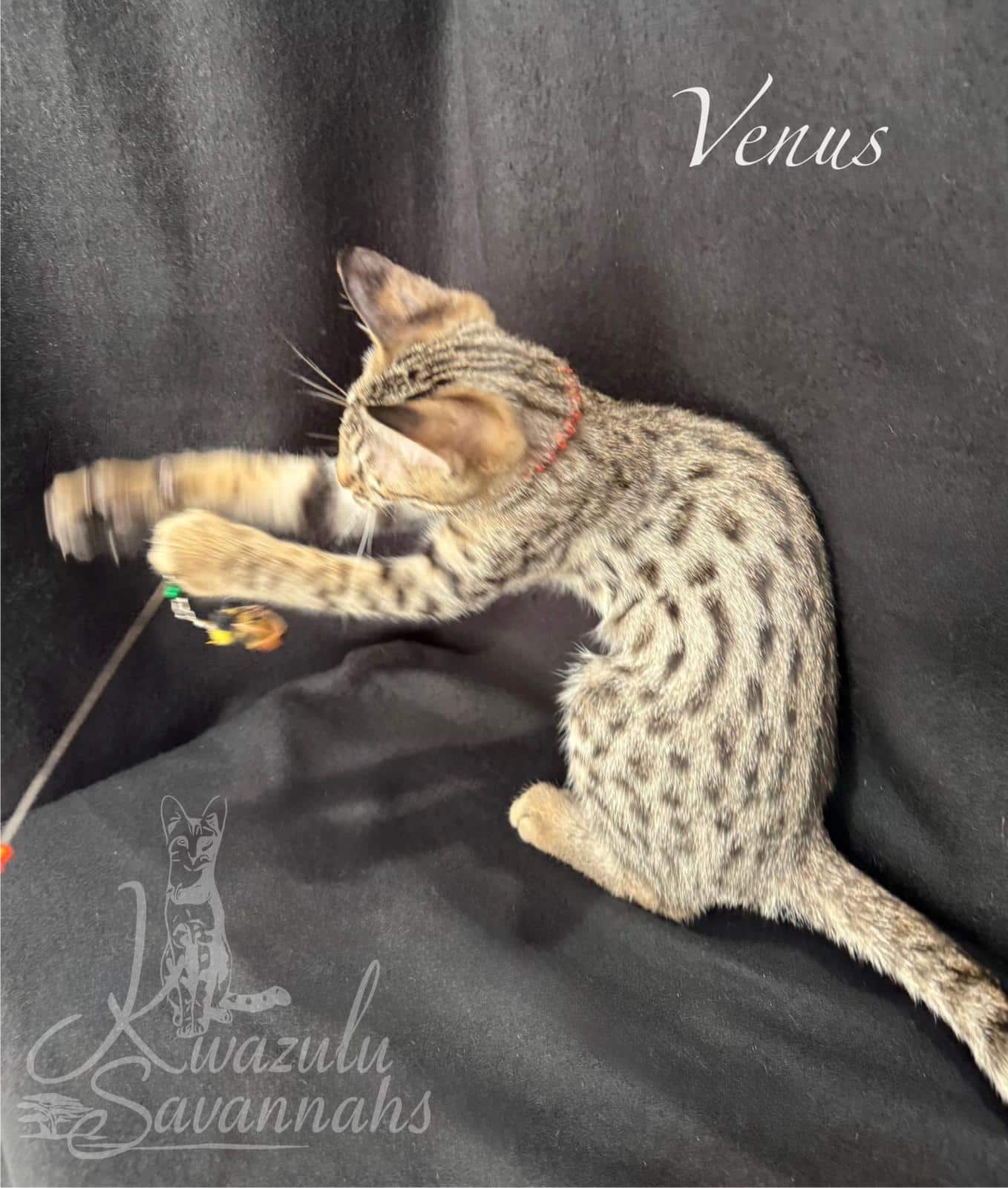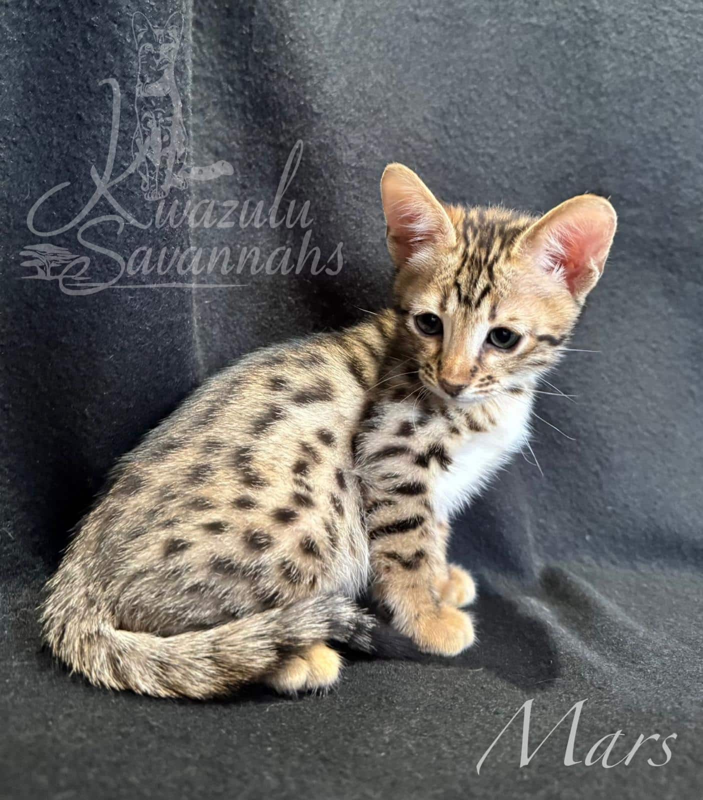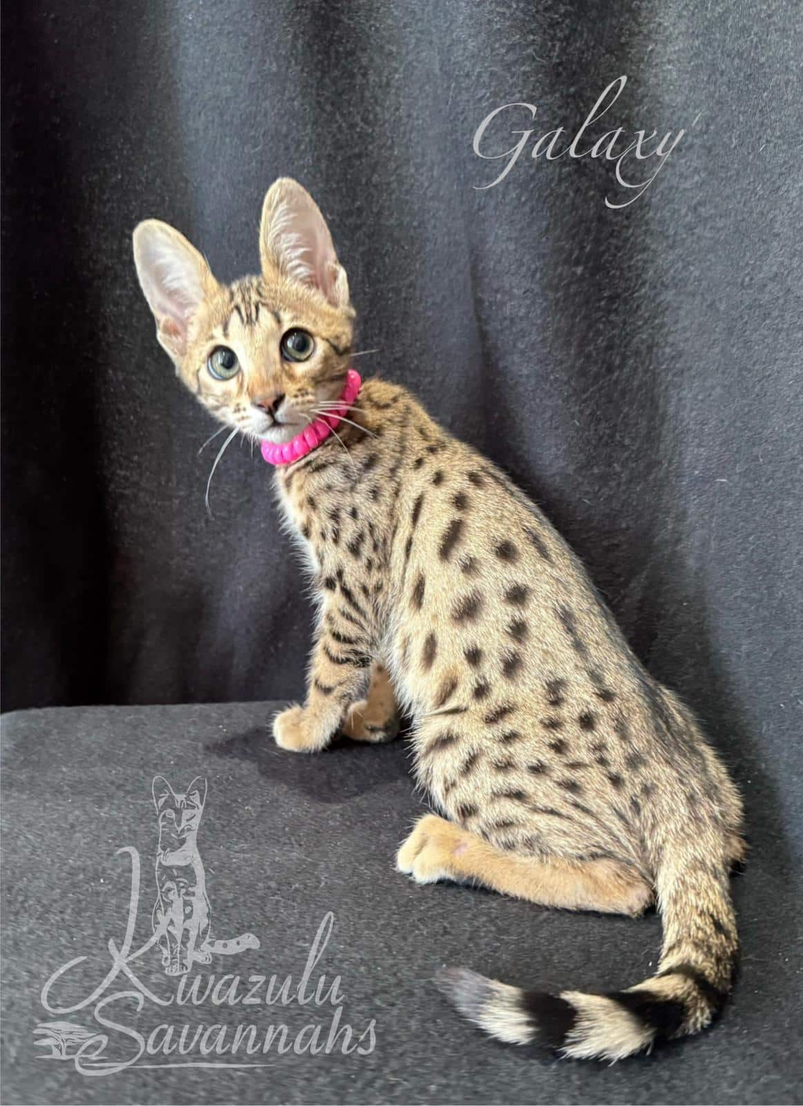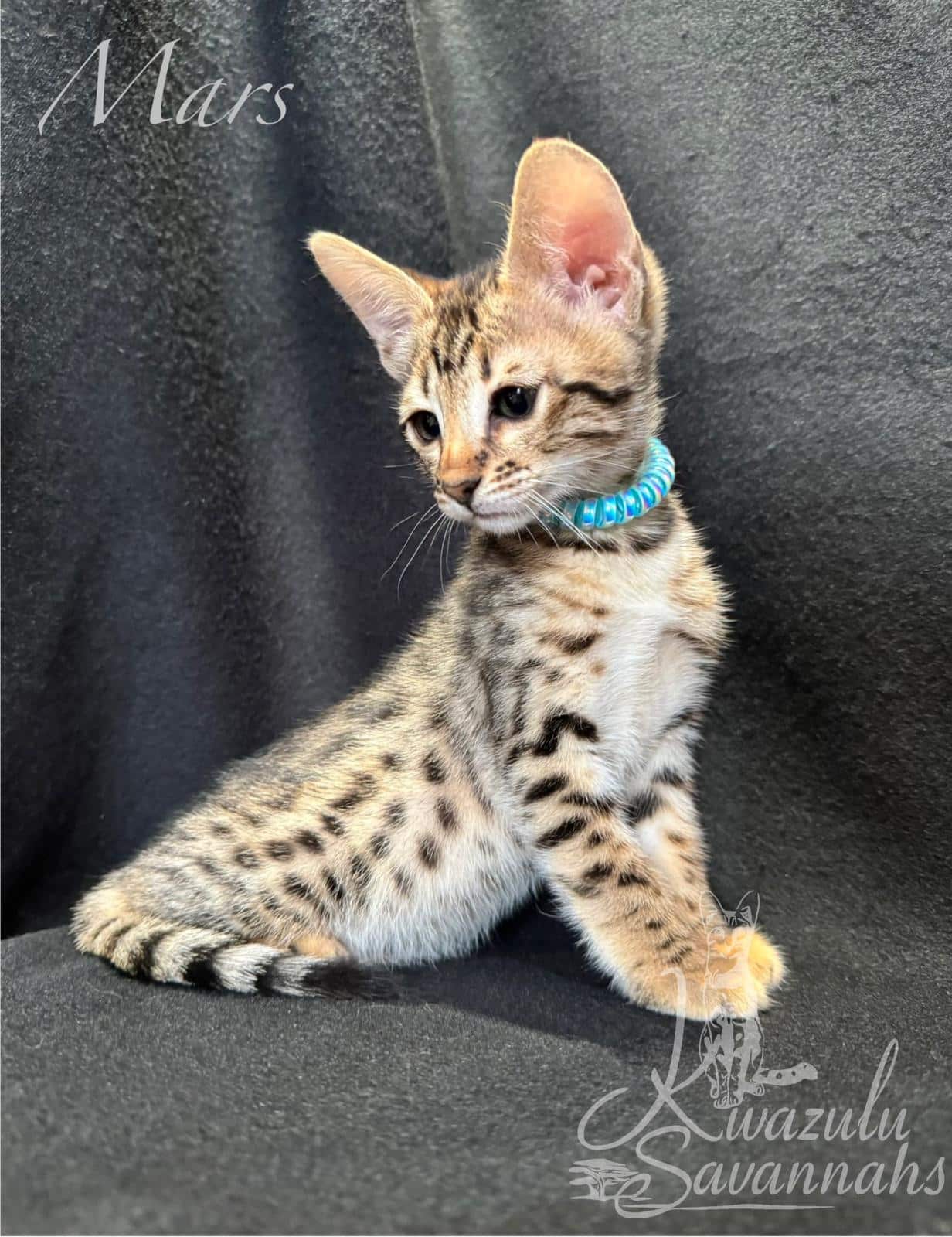 Dear Kwazulu Savannahs! We cannot be grateful enough for our baby Bars! What a sweet, loving, clean, happy and healthy baby! Barsik came to us TICA registered with a full family tree included in his documents, food supplies and toys. Thank you so much for eagerly answering to all our questions and feeding advice! So are so keen to get Bars a little brother or sister in the future!